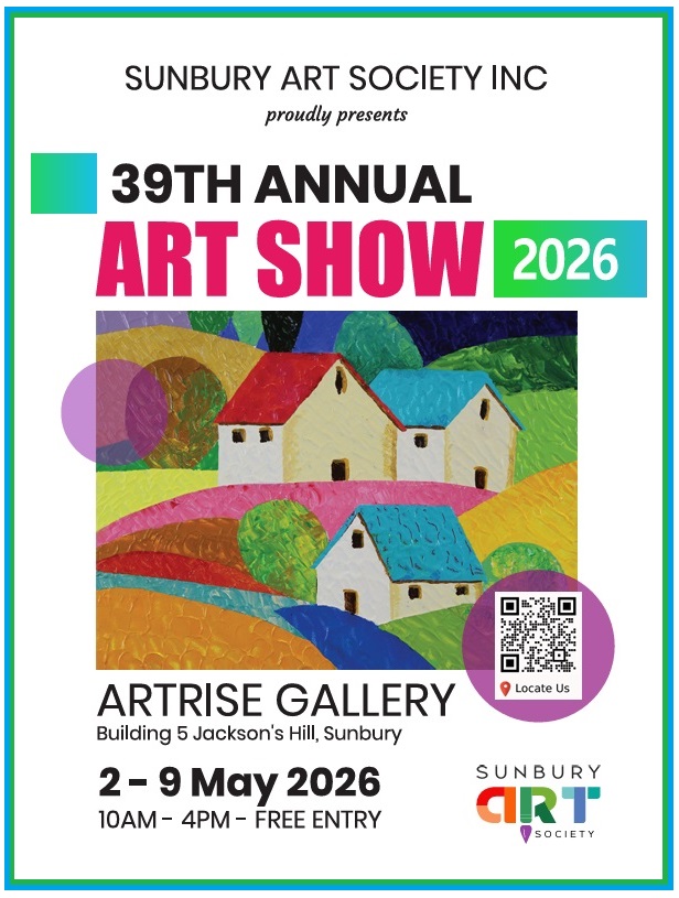 Our 39th Annual Art Show for 2026 commences on the 2nd May, and will be held at our new location, The Artrise Art Gallery.